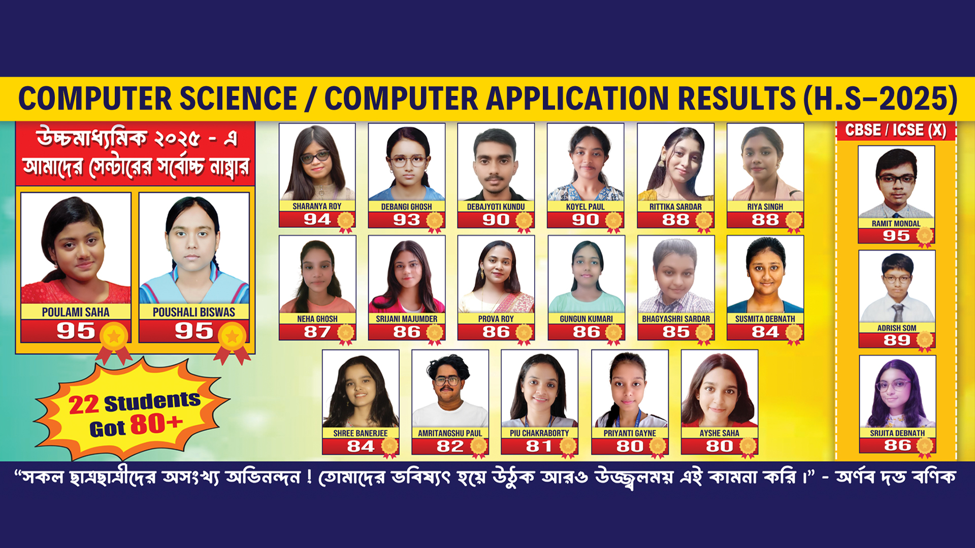 Our students are our first concern and bringing a smile to the face of the parents is our objective. When students score’s well in the exam this becomes the happiest moment that we rejoice among ourselves for successfully building their career on the right track.
